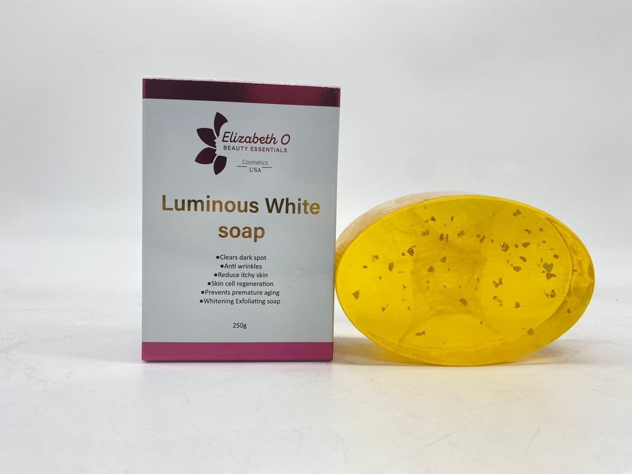 This Luminous White Whitening Soap is formulated with exclusive and active ingredients that deeply clean the skin, It also can remove dark sports,exfoliate, and treat the skin from blemish, acne, and sunburn.